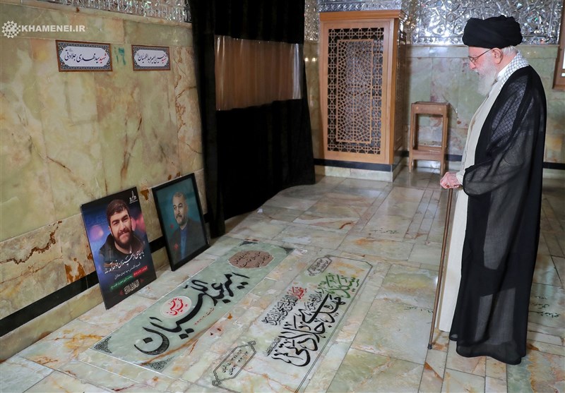 حضور رهبر انقلاب برمزار شهید امیرعبداللهیان و سه شهید دیگر